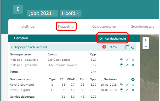 Zet een vinkje bij ‘Aandacht nodig’. Je ziet alleen de percelen met een opmerking in beeld. Los de fouten op en maak de lijst ‘leeg’.